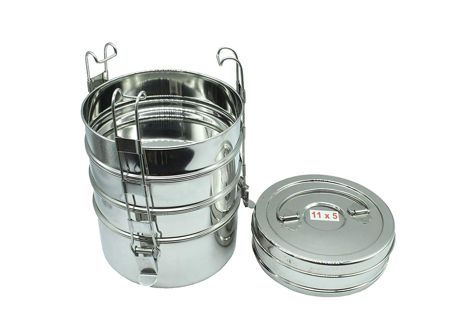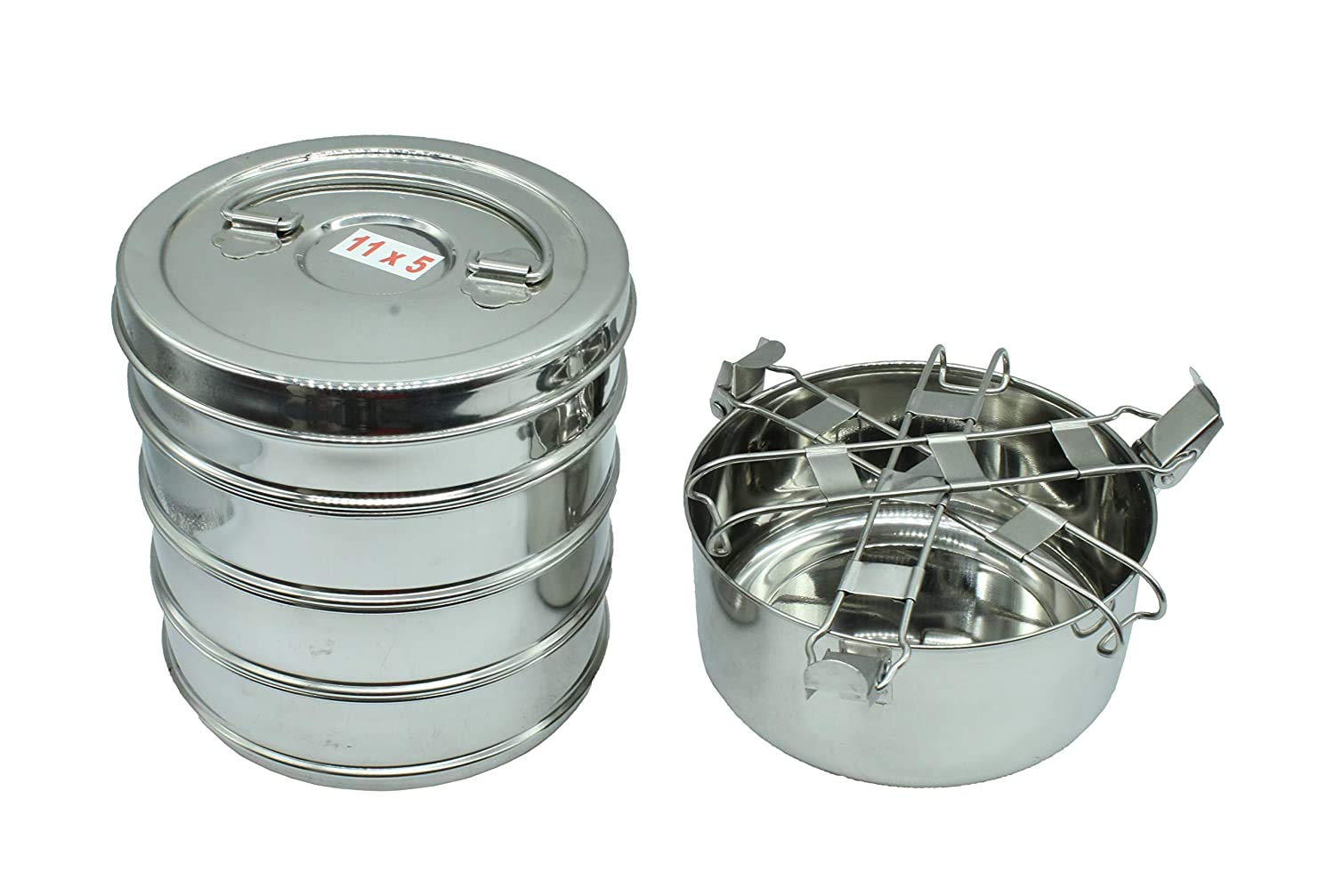 - Package Contents - 1 Pcs eKitchen 5 Tier Stainless Steel (Size: 11x5) Lunch Box | Tiffin Box.