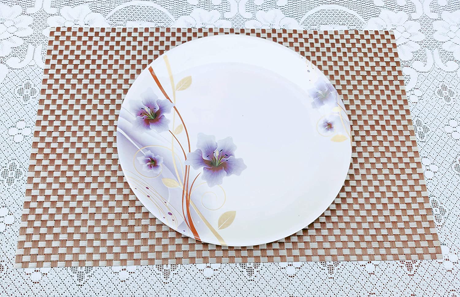 Impress your guests and family by serving food in eKitchen Melamine Dinner Plates. It has a beautiful flower design that enhances its visual appeal. This dinner set is scratch-resistant and is easy to maintain. It is dishwasher safe. Made from melamine, it is strong and food grade.