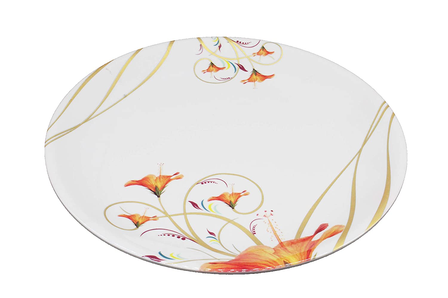 Impress your guests and family by serving food in eKitchen Melamine Dinner Plates . It has a beautiful flower design that enhances its visual appeal. This dinner set is scratch resistant and is easy to maintain. It is dishwasher safe. Made from melamine, it is strong and food grade.