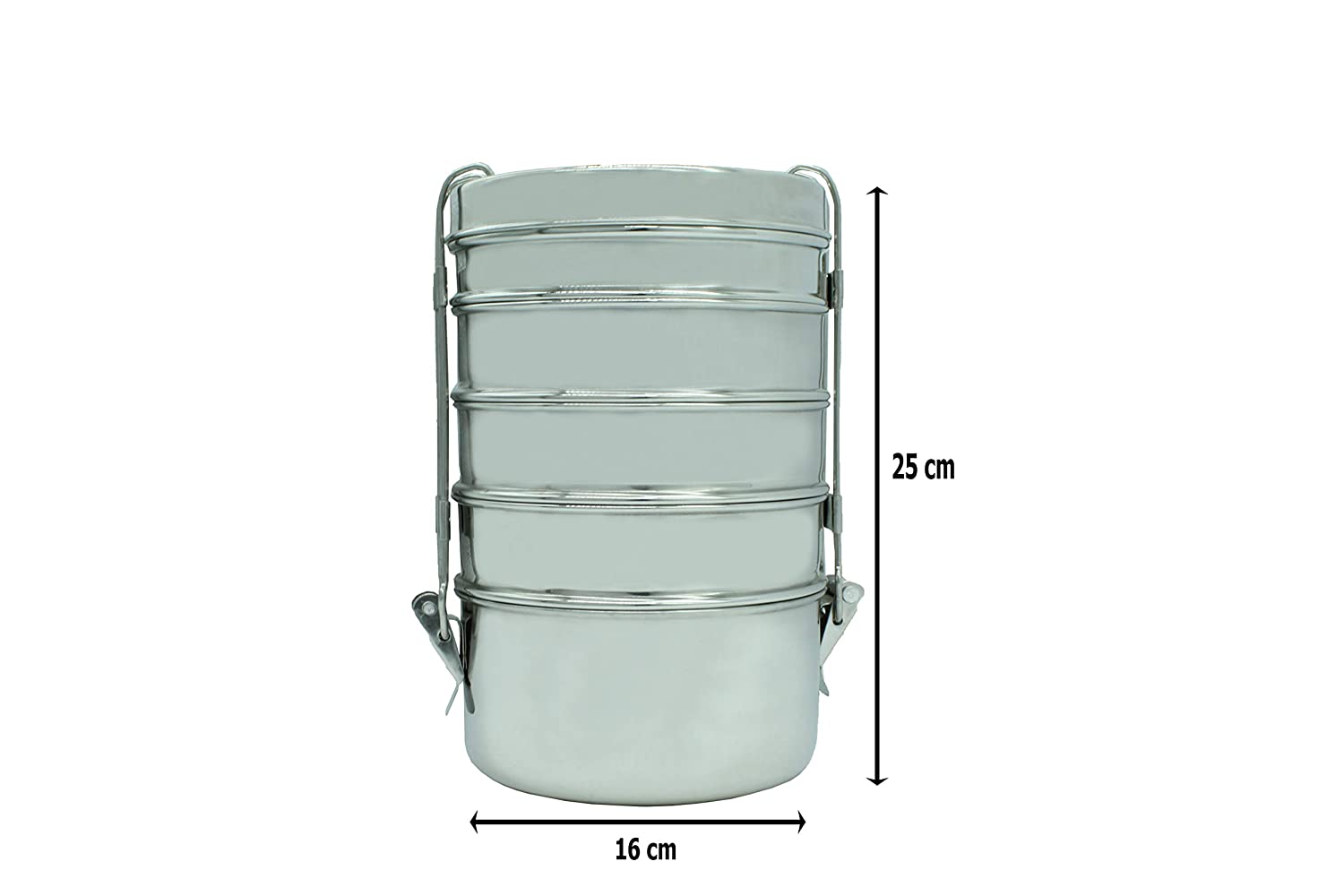 Stainless Steel 5 Tier Lunch Box | Tiffin Carrier (Size:10x5)