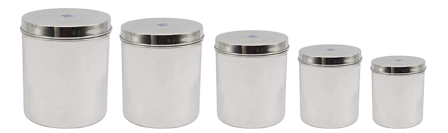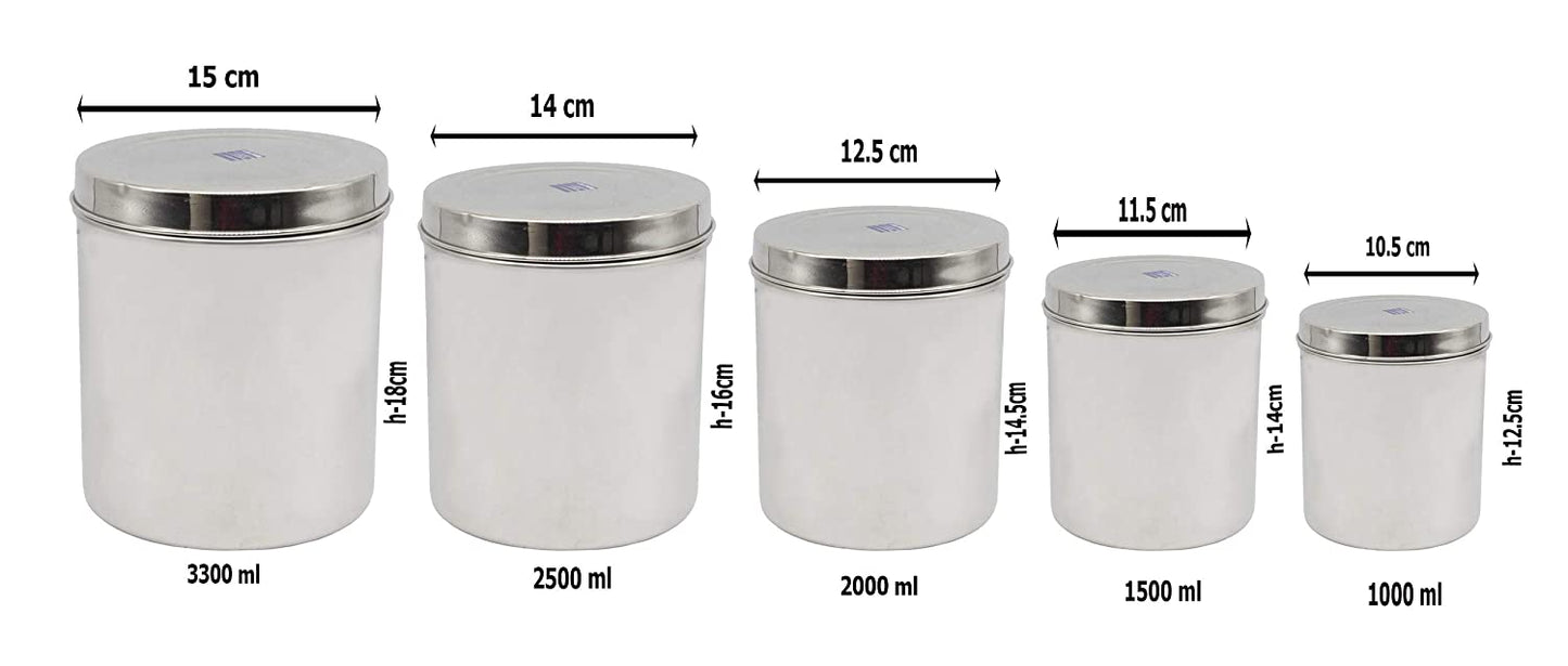 Stainless Steel Canister Set Of 5 Pcs - 1000 ml, 1500 ml, 2000 ml, 2500 ml, 3300 ml