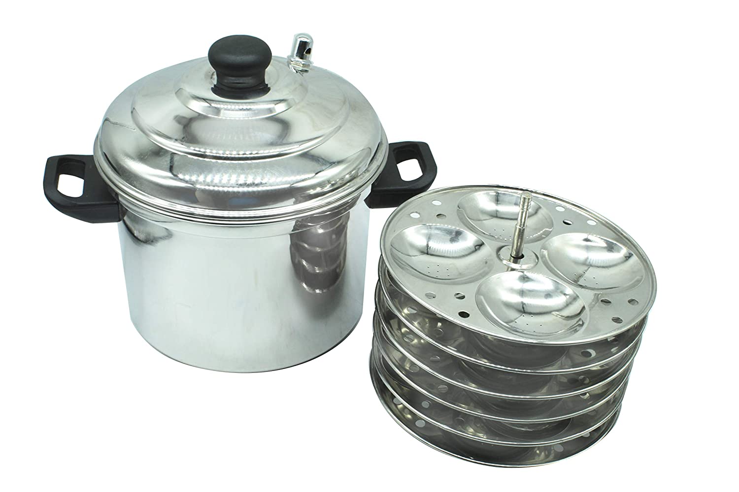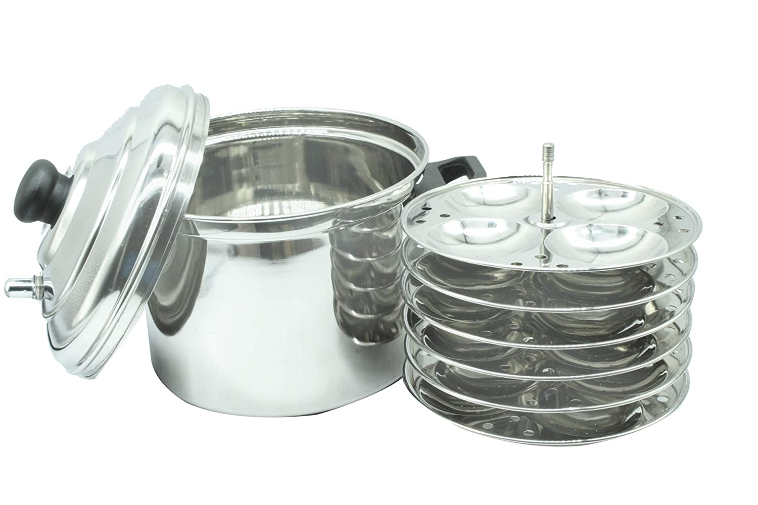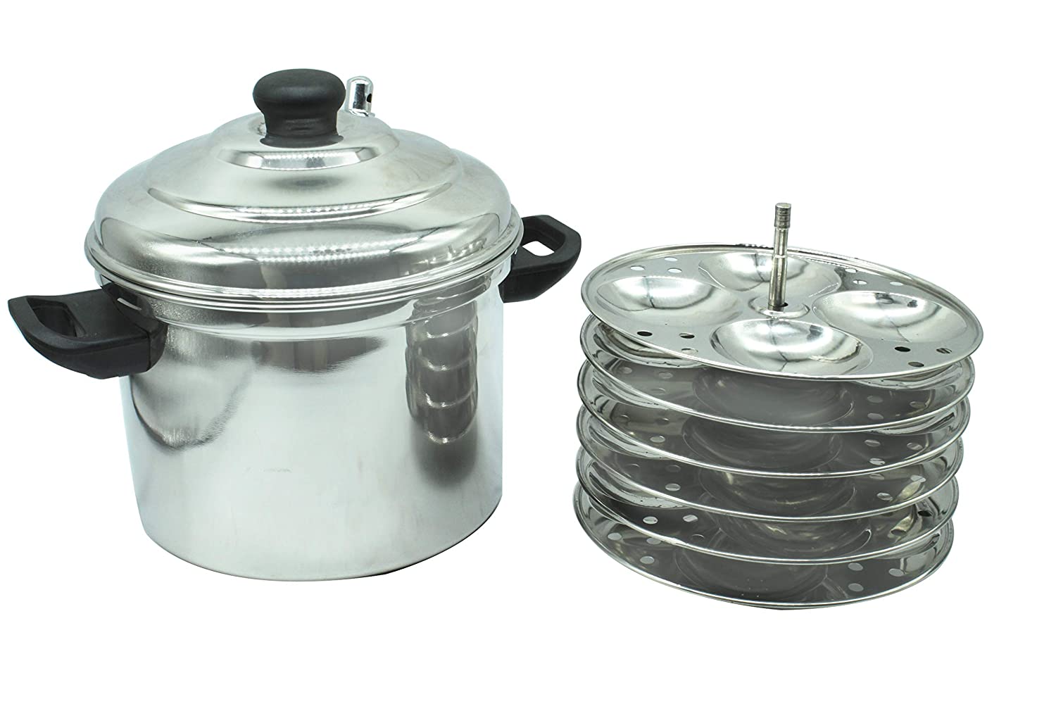 - Package Content - 1 Pcs eKitchen Stainless Steel Induction Compatible 24 idlies Idli Maker | Steamer | Cooker - 6 Plates.
