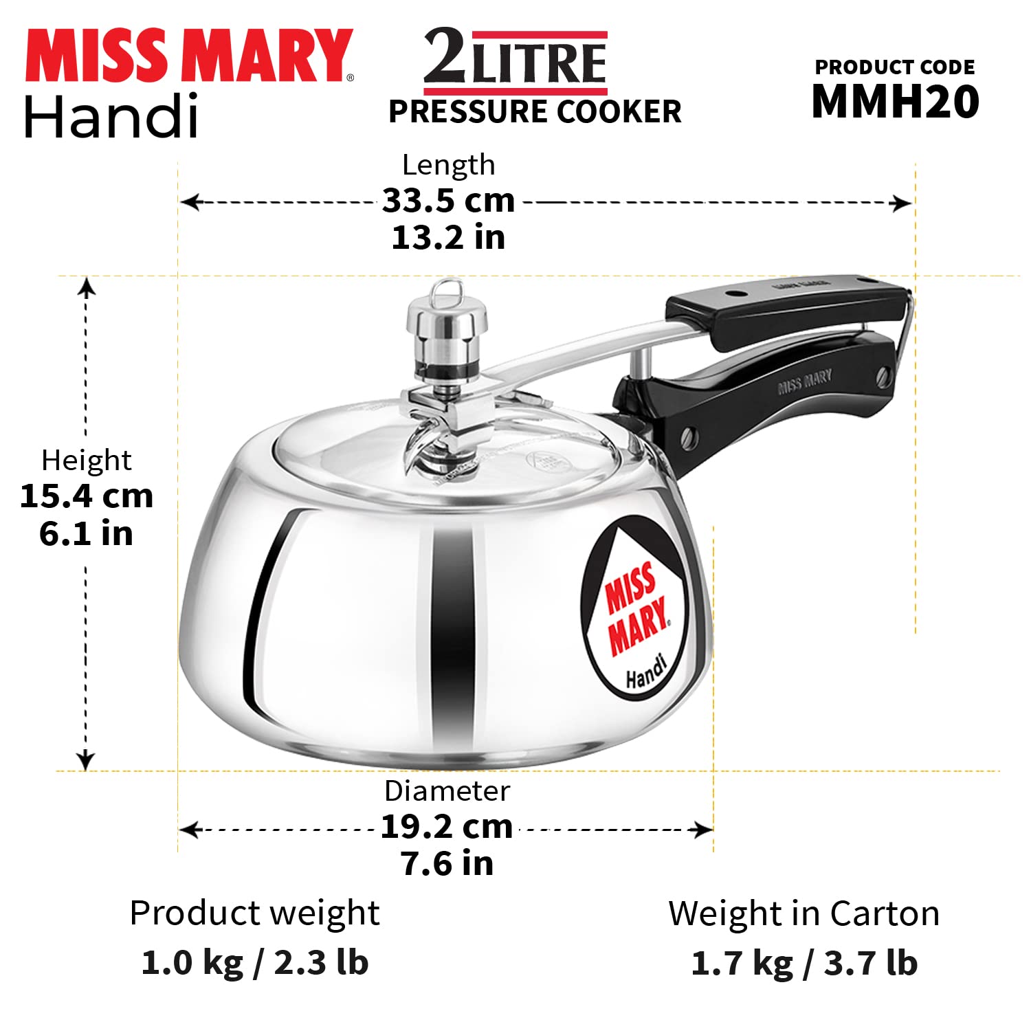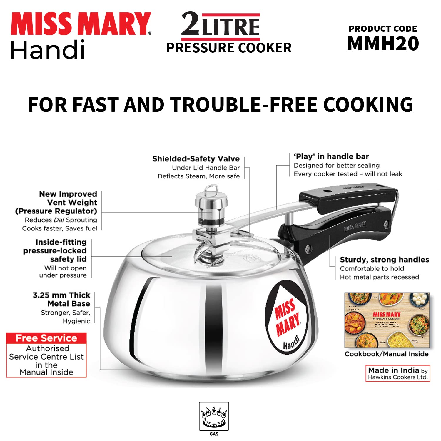 Hawkins Miss Mary Handi Aluminium Inner Lid Pressure Cooker 2 Litres - MMH20