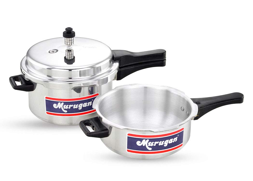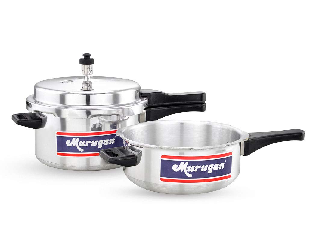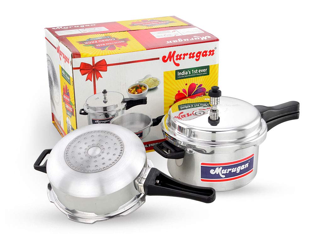 Murugan Aluminium Induction Pressure Cooker 5 Litres & Small Pressure Pan 4 Litres With Single Lid Combo