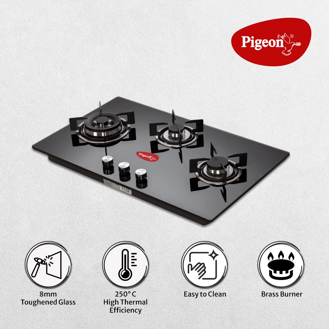 Pigeon Ornate Italian 3 Burner Hob, Multi Spark Integrated Auto Ignition, Scratch Resistant 8 mm Thick Toughened Glasstop Gas Stove -14117