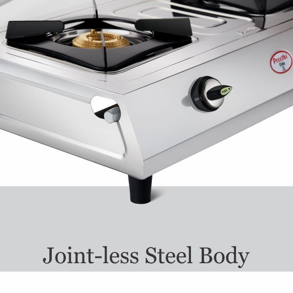 - Joint Less Frame : No visible welding or demarcation on the corners of the Gas Stove. Gives it an elegant look and also decreases the risk of injury to fingers while cleaning.